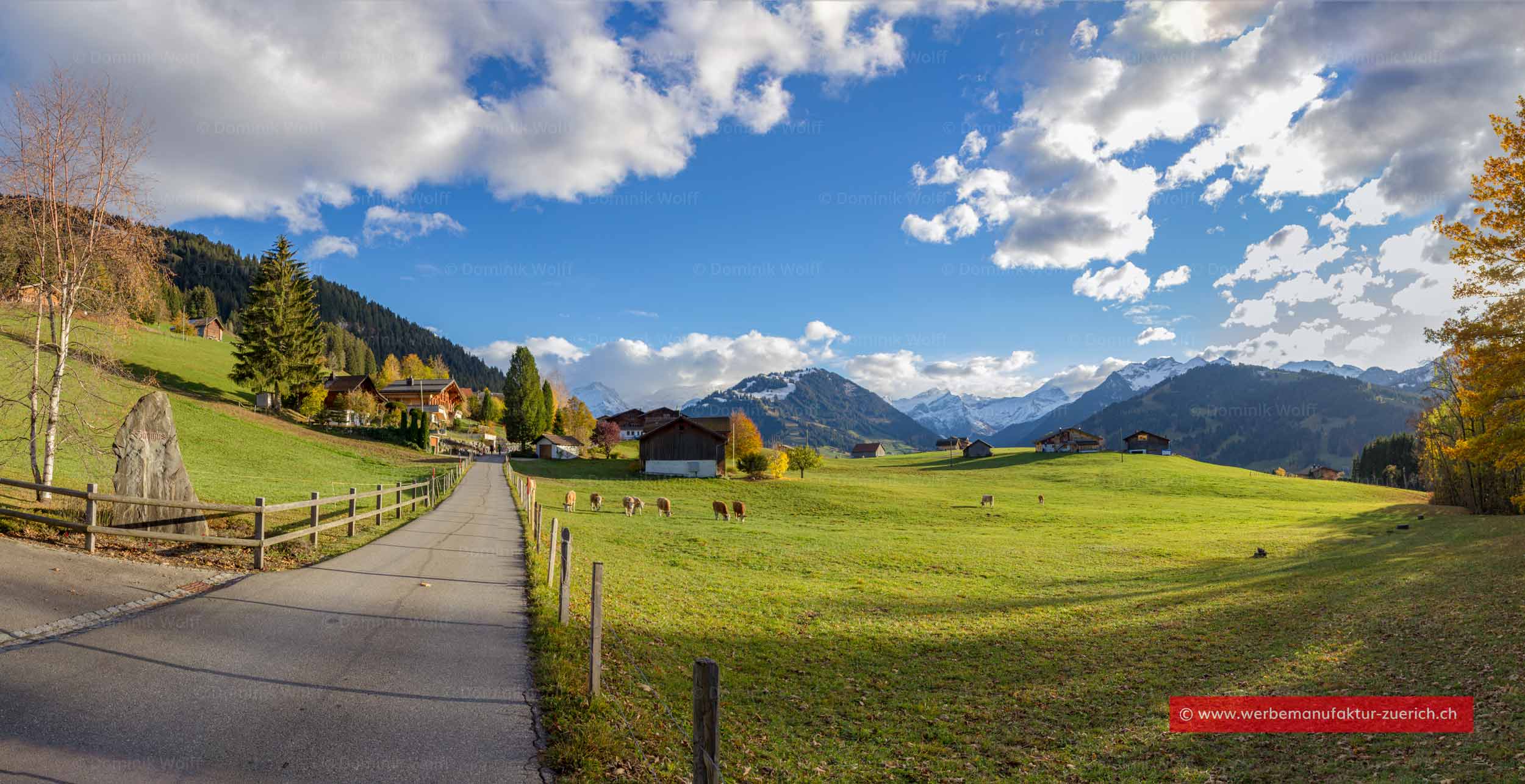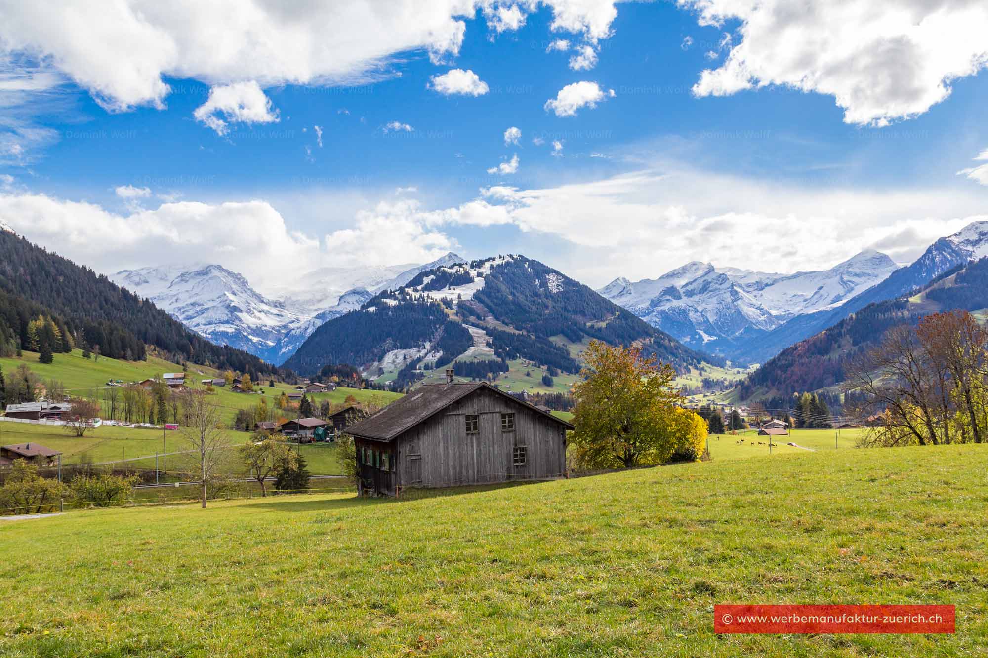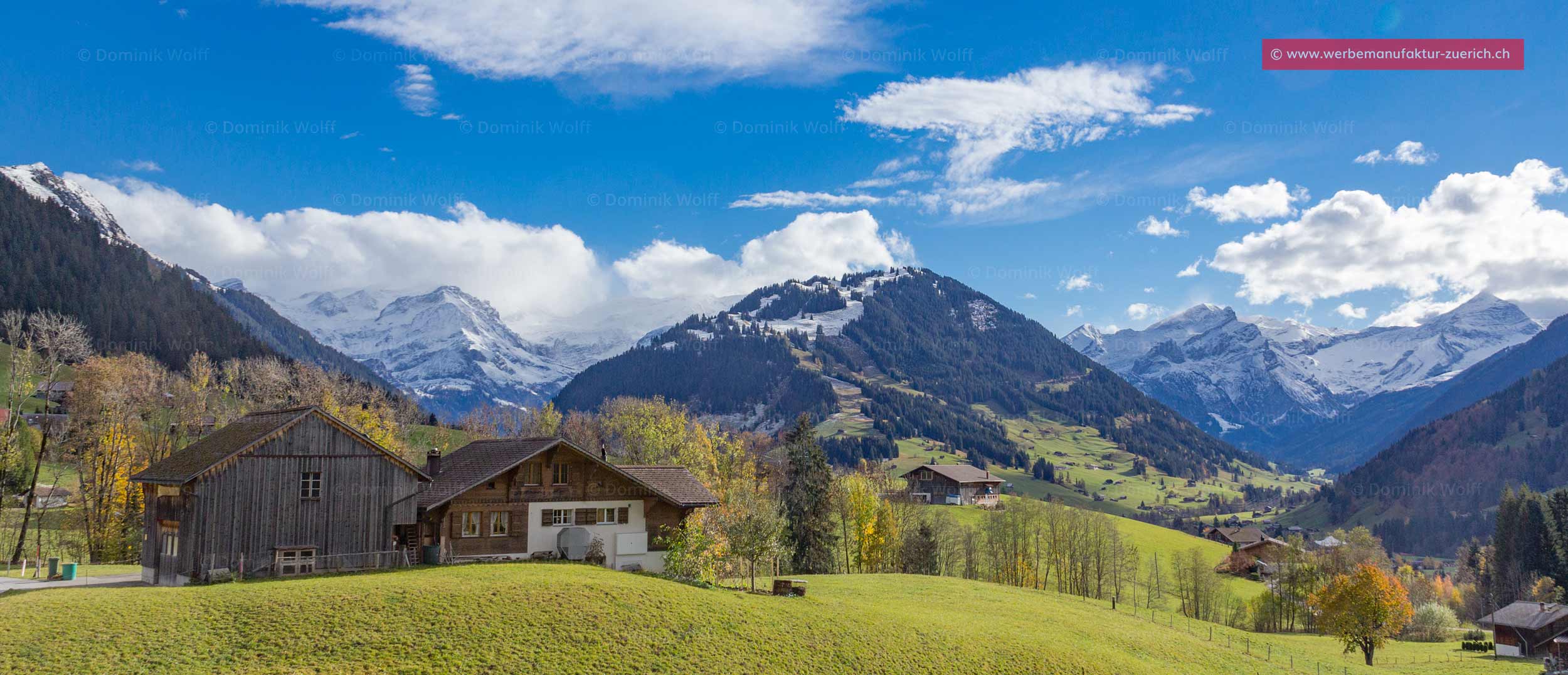 Schönried bei Gstaad im Saanenland mit Hornberg, Saanerslochgrat und Rinderberg
